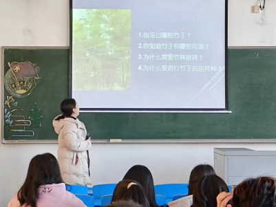围绕报告主题,以“以竹代塑”为切入点,通过向大家系统介绍了随着新技术的发展竹子在家具、建筑、高铁和航空领域的多种用途,竹子以其快速生长的优势在碳储量方面的特殊地位和研究进展,又由于长江中下游竹林主要分布区季节性干旱对竹林造成了严重的经济损失,进而引出为什么要进行竹林培育及竹子抗逆育种的重要性。最后结合自己在毛竹抗逆方面的研究对毛竹及林业资源的抗逆育种进行展望,并鼓励学生像竹子一样,厚积薄发,蓄力前行。