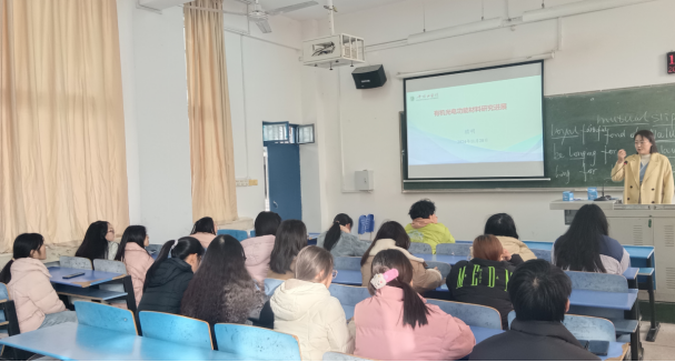 首次,腊老师以“新技术与材料”为引,向大家简单介绍了功能材料的定义和日常生活中常见的功能材料。围绕此次报告主题,以新世纪人类面临的两大危机为切入点,介绍了有机光电功能材料的研究背景。紧接着,腊老师详细介绍了有机光伏材料和有机电致变色材料的应用领域、工作原理和研究现状。最后,腊老师结合自己科研成果向同学们阐述了有机光电功能材料研究的一般方法和从事相关领域研究的国内科研机构,并鼓励大家学好专业知识,为继续深造打下坚实基础。