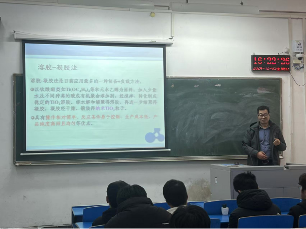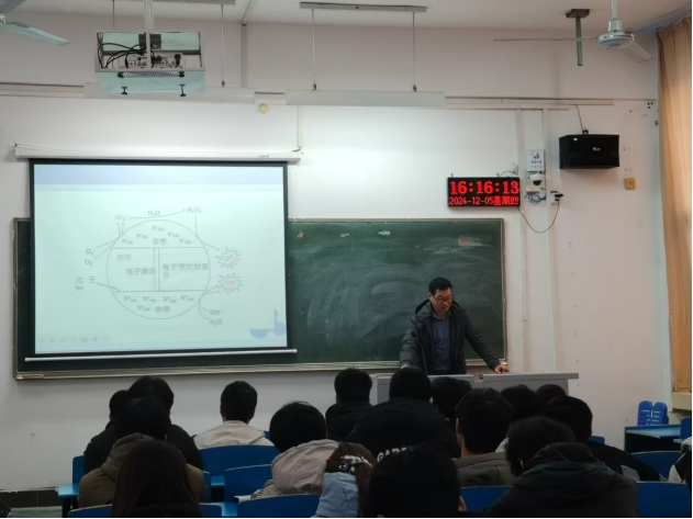 2024年12月5日16点,平顶山学院威廉希尔WilliamHill官方网站王亚波老师在4104教室开展了一场以《二氧化钛光催化技术简介》为主题的学术报告,威廉希尔WilliamHill官方网站2024级材料1班同学参加了本次学术报告。