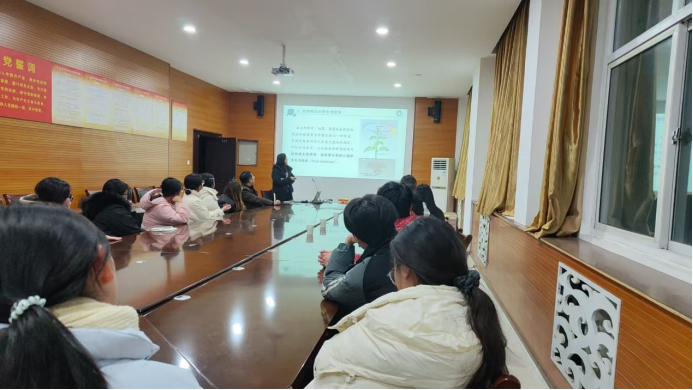 范老师首先介绍了自然界中的共生现象,讲解了植物和微生物在自然系统中的重要性,概述了研究微生物与植物之间的关系对农业、环境保护和生态学的意义。接着,范老师着重介绍了植物根际微生物群落对植物生长的促进作用以及内生菌与植物的关系。最后,范老师结合自身的科研经历,详细介绍了107杨湿心材细菌群落与木材性质的关系,报告内容逻辑清晰,丰富详实,使同学们加深了对专业领域的认识,激发了同学们对环境生态工程专业的学习兴趣。