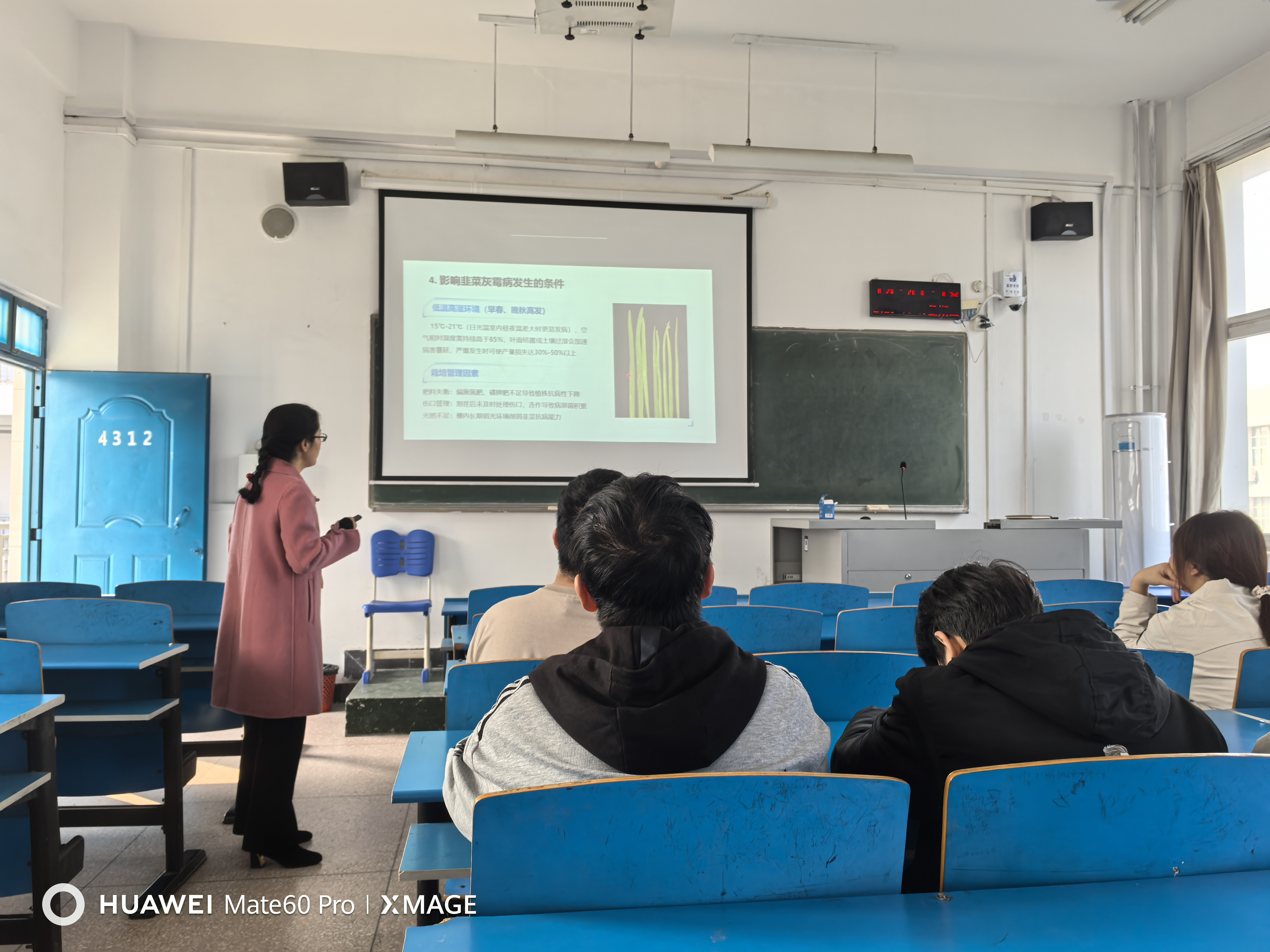 报告系统介绍了利用组织分离法、形态学与分子生物学(ITS序列)相结合的手段,从韭菜病株中分离并鉴定出韭菜灰霉病致病菌的全过程,阐释了病原菌生物学特性、致病机制及绿色防控思路。同学们表示,报告不仅拓宽了微生物生态与植物病理学视野,更为今后专业课程学习、大学生创新实验选题及考研方向提供了鲜活案例与科研思路,激发了投身绿色农业与生态环境保护的志趣。
