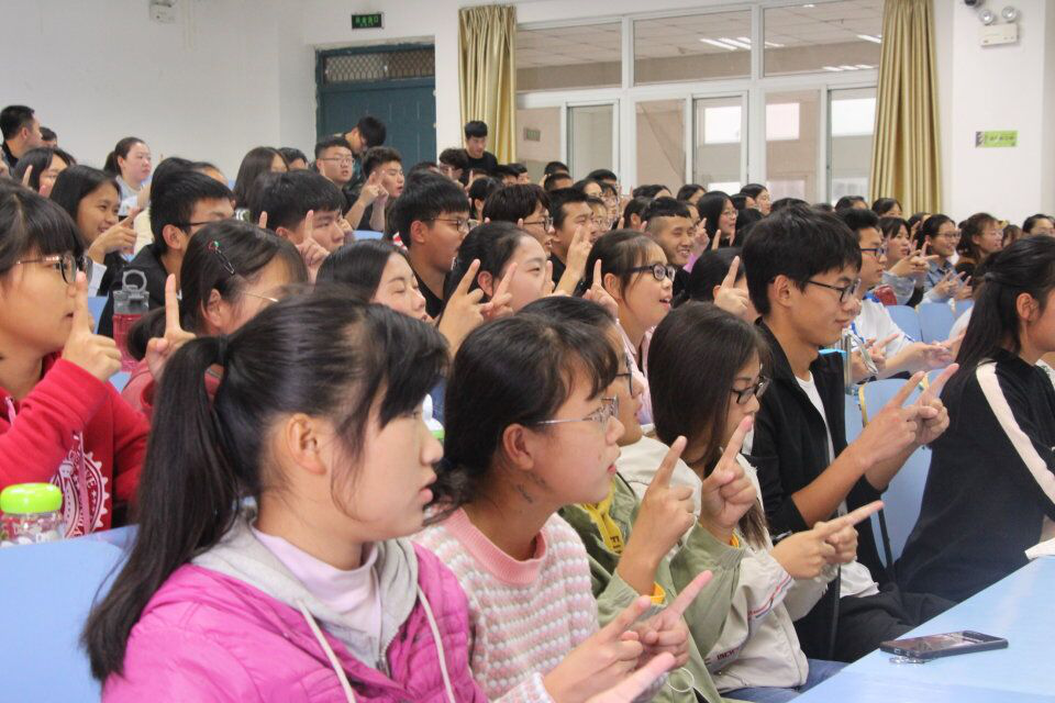 活动伊始,李晓雅老师提出“什么是幸福”的问题,引发同学们的思考,并以漫画的形式向大家解答“幸福是什么”。接着,李老师教同学们做手动操,简单的动作,却给同学们带来了大大的快乐,教室中不断有笑声传出。李老师用诙谐的语言向大家举例介绍生活中的心理现象、对大学生心理健康教育的认识及大一新生适应问题。同时,李老师也用插图的方式告诉同学们一些对待生活,学习和人际交往方面的方法。活动中,李老师还让同学们做了《走进新生活》的新生适应练习,帮助同学们及时发现心理问题之后,李老师教同学们做放松训练,同学们积极配合,现场氛围轻松活跃。活动的最后,李老师送给大家一首萨提亚的诗,希望同学们都能有一个健康的心理状态。活动在同学们热烈的掌声和朗朗笑声中结束。