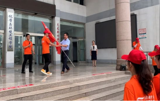 学院党委副书记贺国旭为本次暑期“三下乡”社会实践志愿服务团队授旗,并希望志愿者们能通过本次暑期社会实践活动,传播知识,服务当地学生,不断提升自我价值。