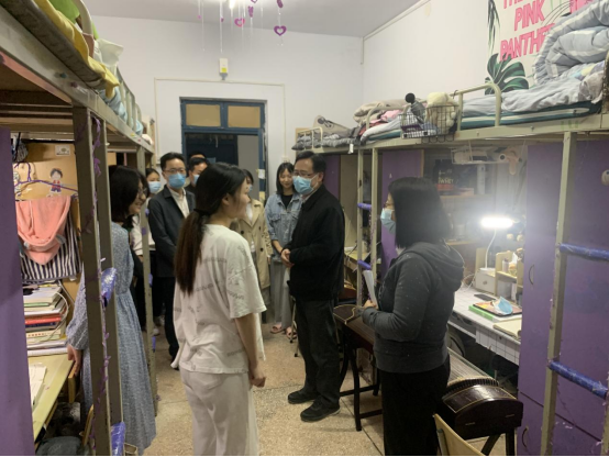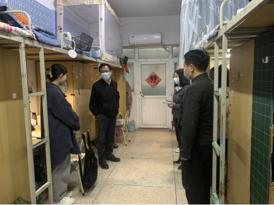 在走访过程中,侯校长与1101、1120等宿舍的同学们亲切交流。详细了解了同学们近期的生活、饮食和网课学习情况,对同学们关心和反馈的问题耐心的进行解答,对同学们在宿舍的学习热情和学习氛围给予充分肯定。侯校长还特别强调了当前疫情防控形势严峻,鼓励同学们要严格遵守学校疫情防控管理规定,按照学校防控要求积极做好个人防护,及时参加核酸检测,适时适量锻炼身体,保持积极乐观的心态和良好生活学习习惯,共同营造安全、卫生的宿舍环境。最后,侯校长提醒同学们天气变凉注意保暖,多和家人联系报平安,相信在大家的共同努力下,疫情终会烟消云散。