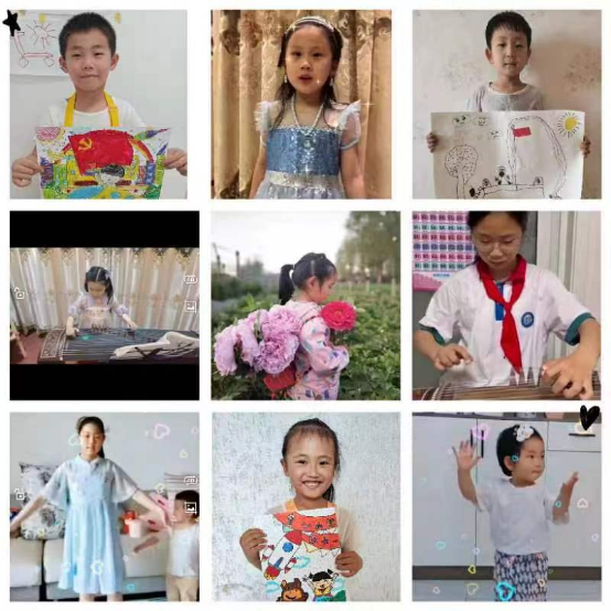 活动包括“在党旗下成长”诗文展示,“颂歌献给党”歌唱展示,“名诗名言”书法展示,“多彩生活”绘画展示,特长展示,亲子阅读展示等丰富内容。本次活动共收集书画作品30余份,视频作品40余份,照片百余幅。孩子们用美妙的歌声、优美的舞姿、绘声绘色的表演、奇思妙想的小实验等,在展示才艺的同时,歌颂了伟大的祖国,表达了新时代儿童在党的阳光下健康成长、放飞梦想的良好愿望。