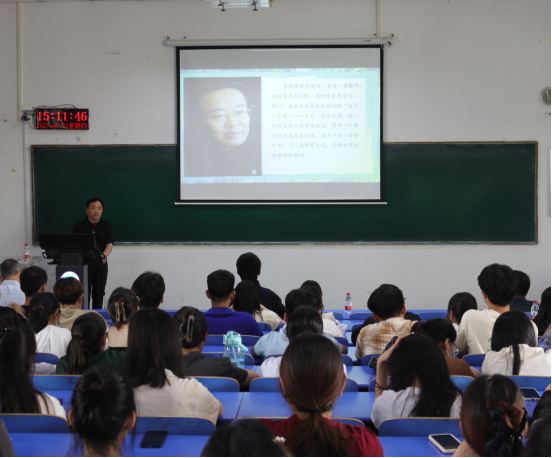 在随后的讲座中,闫红敏结合自身工作经历,向同学们毫无保留地传授了自己三十余年来的教学经验,他坚持“心态决定一切”,讲述了自己从职场新人成长为优秀教师的历程、感悟与收获。闫红敏将个人和时代相结合,总结了幸福教师的必备品质,并希望有志从事教师行业的同学们都能通过自身努力,最终梦想成真。