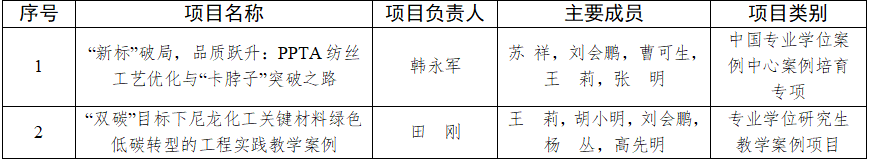 近日,河南省教育厅发布《关于公布2026年河南省研究生教育改革与质量提升工程项目(案例项目)名单的通知》(教办研〔2025〕257号),威廉希尔WilliamHill官方网站韩永军教授团队申报的《“新标”破局,品质跃升:PPTA纺丝工艺优化与“卡脖子”技术突破之路》项目成功获批2026年河南省中国专业学位案例中心案例培育专项项目,田刚副教授团队申报的《“双碳”目标下尼龙化工关键材料绿色低碳转型的工程实践教学案例》项目成功获批2026年河南省专业学位研究生教学案例项目。
