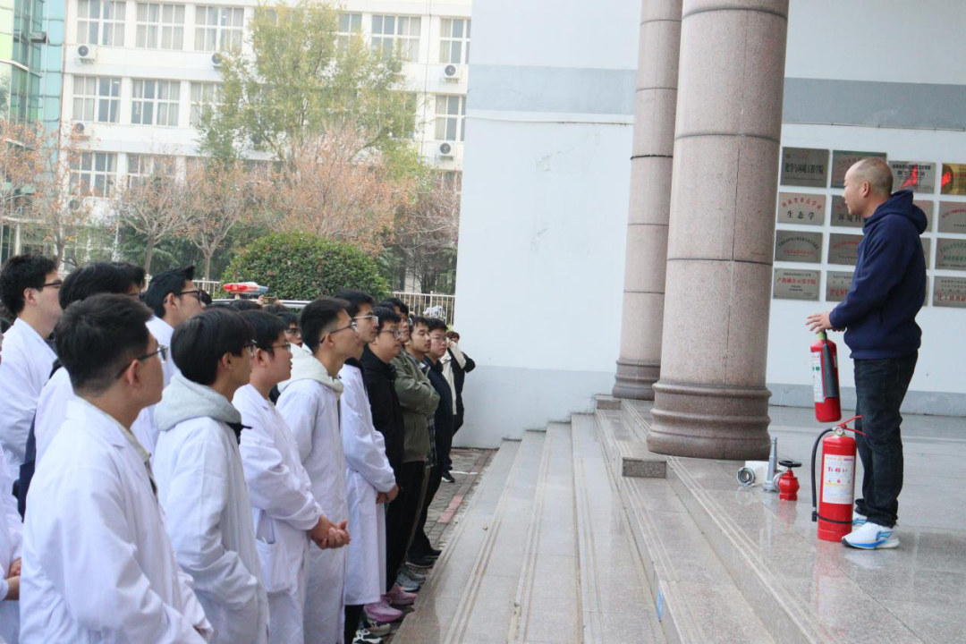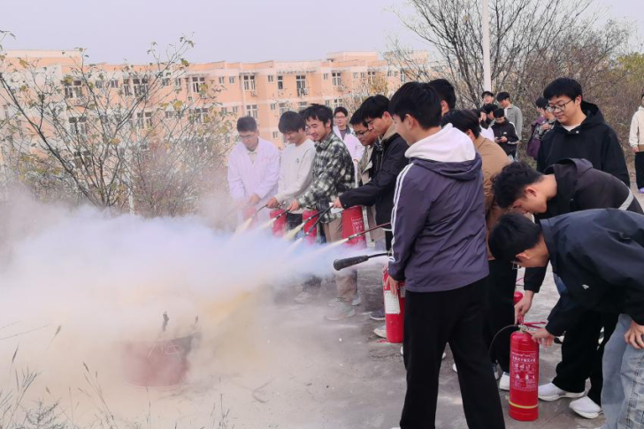 在全体师生安全撤离至集结地点后,活动进入灭火实战演练环节。学校保卫处陈红兵科长首先详细讲解了干粉灭火器与二氧化碳灭火器的适用范围、操作要领及注意事项,并进行了标准的操作演示。在认真观摩后,师生们踊跃参与,分批上前,在专业人员的指导下,亲身体验了如何使用灭火器扑灭初起“火灾”。通过“一提、二拔、三握、四压”的实操,大家将理论知识转化为实战技能,有效提升了扑救初起火灾的能力。