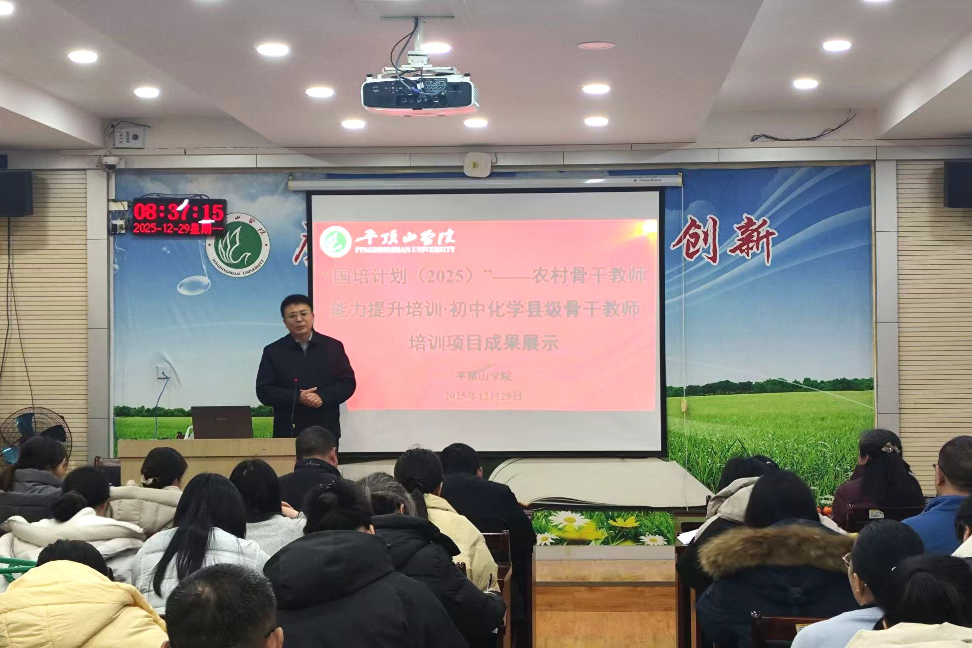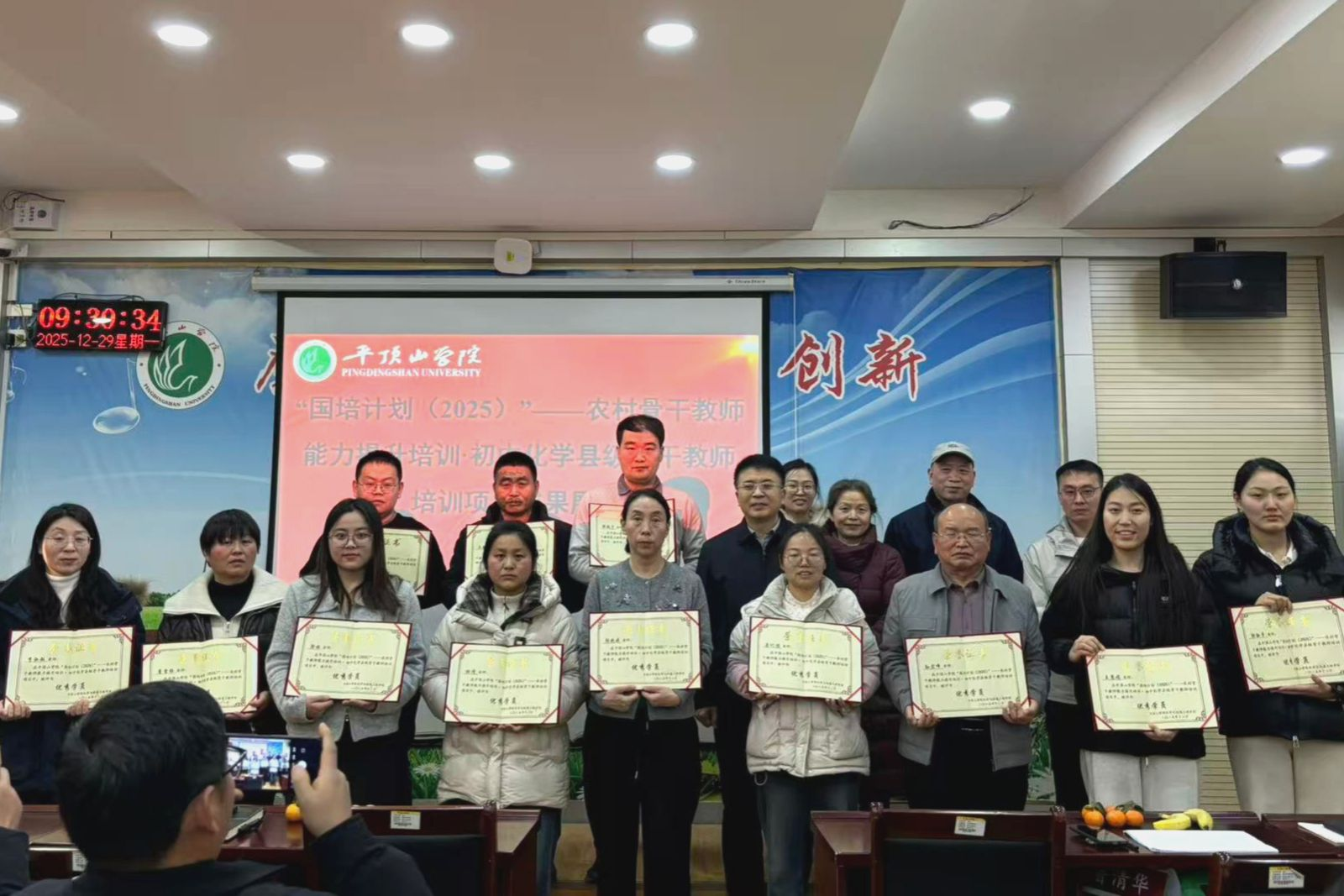 12月29日,以“虚拟仿真实验赋能县级及以下初中化学教学创新实践”为主题的“国培计划(2025)——农村骨干教师能力提升培训项目・县级骨干教师(初中化学)培训班”,在平顶山学院崇文校区B404教室圆满结业。威廉希尔WilliamHill官方网站副院长罗晓强、刘巧茹教授、田正山教授,班级负责老师岳欢、马洋洋及培训班学员共同出席结业典礼。